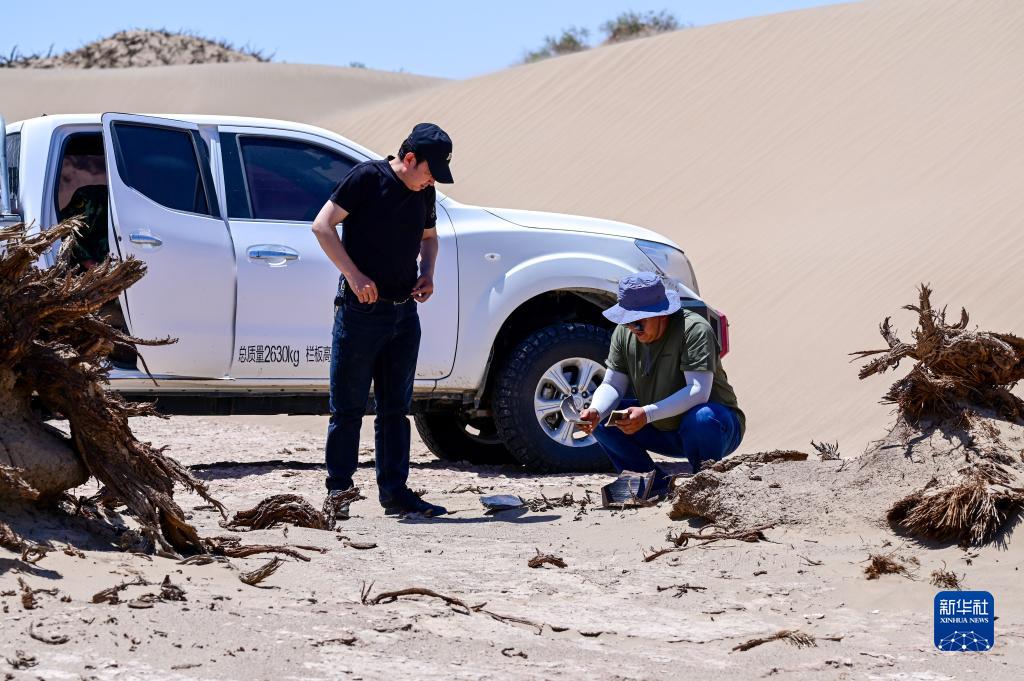 6月2日,額濟納旗文物保護中心工作人員在居延遺址核心區巡護。