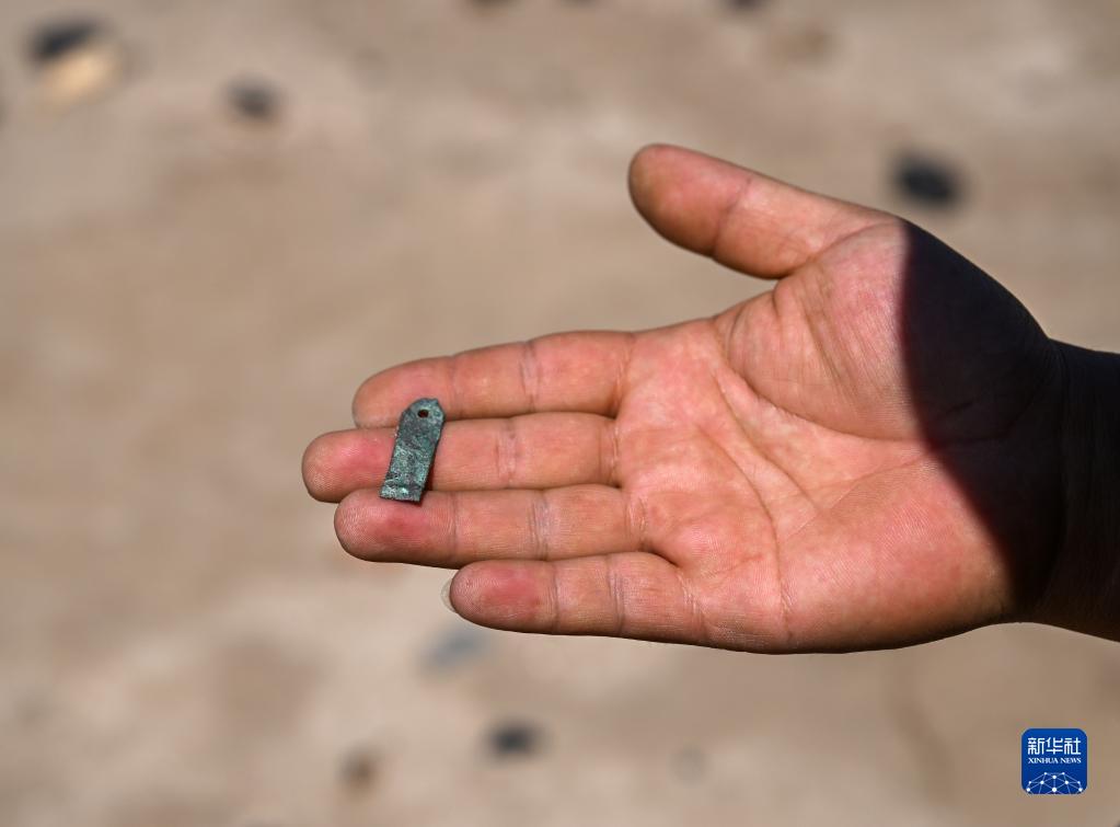 這是額濟納旗文物保護中心工作人員在巡護中發現的銅片(6月2日攝)。
