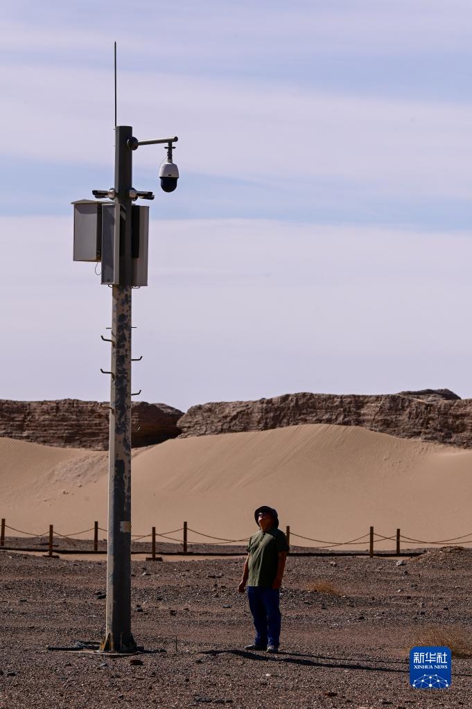 6月2日,額濟納旗文物保護中心工作人員在黑城遺址察看文保監控設備工作情況。