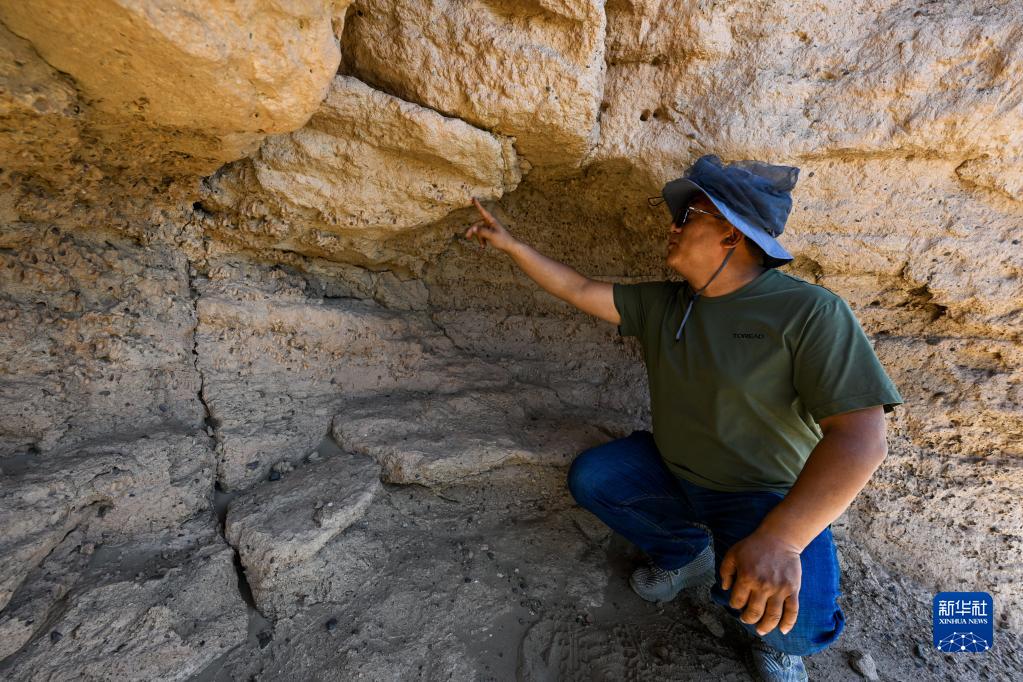 6月2日,額濟納旗文物保護中心工作人員在查看一處墓葬封土堆。
