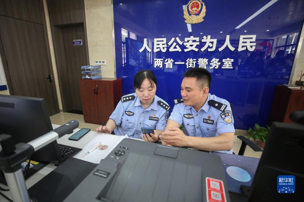 安徽馬鞍山博望區丹陽鎮與江蘇南京江寧區丹陽社區相毗鄰,古時兩個丹陽曾屬一地,這里街道相連、居民生活交流緊密,但因分屬蘇皖兩省,在辦理政務手續和解決警務需求時有不便之處。今年2月底,蘇皖“兩省一街”丹陽警務室政務服務窗口正式揭牌,在兩地交界區域實體化運行。