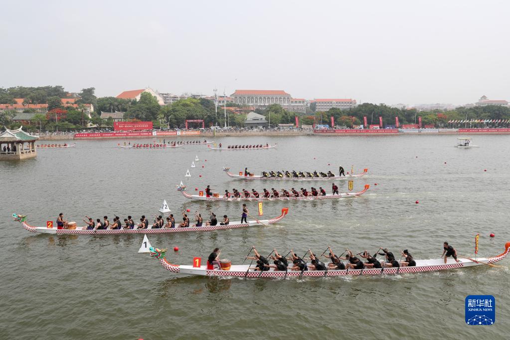 當日,2023海峽兩岸(集美)龍舟文化節暨第十六屆“嘉庚杯”“敬賢杯”海峽兩岸龍舟賽在廈門集美龍舟池啟幕。來自海峽兩岸的47支龍舟隊伍在競賽中享受龍舟競渡的活力、中華傳統文化的魅力,共有約500名臺胞參與賽事。
