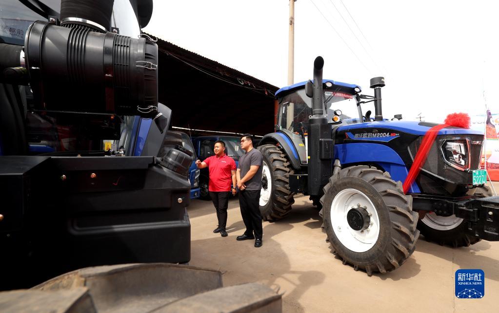 6月2日,在河北省晉州市一家農機銷售公司,顧客選購農用拖拉機。