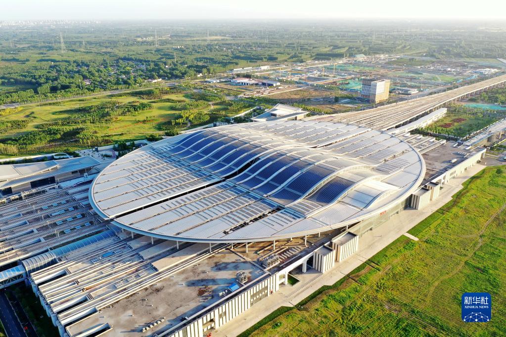 這是雄安站(6月2日攝,無人機照片)。雄安站位于雄安新區昝崗片區,是雄安新區開工建設的第一個重大基礎設施項目,具有標志性意義。