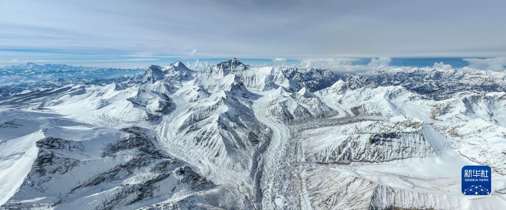 這是在海拔8400米左右高空拍攝的珠穆朗瑪峰和喜馬拉雅山脈群山(5月23日攝,無人機照片)。