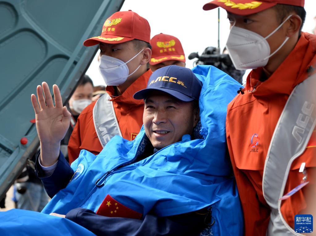 6月4日,神舟十五號載人飛船返回艙在東風著陸場成功著陸,神舟十五號載人飛行任務取得圓滿成功。這是航天員費俊龍揮手致意。新華社記者 任軍川 攝