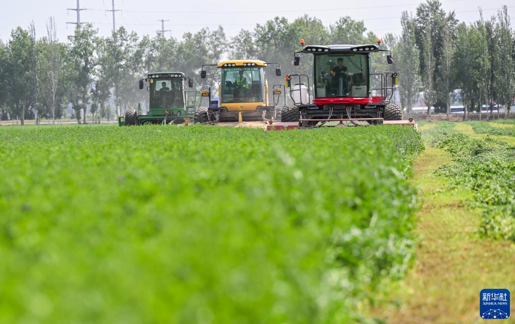 6月4日,在土默特左旗國家現代農業示范區內,機械車輛在收割苜蓿。