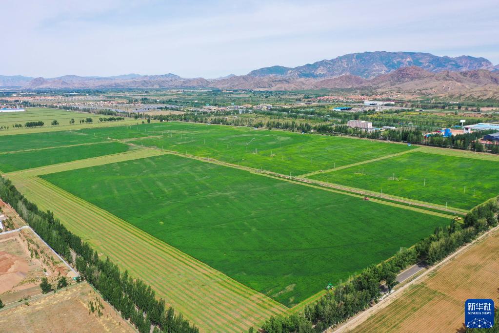 這是6月4日拍攝的土默特左旗國家現代農業示范區內的苜蓿種植基地(無人機照片)。