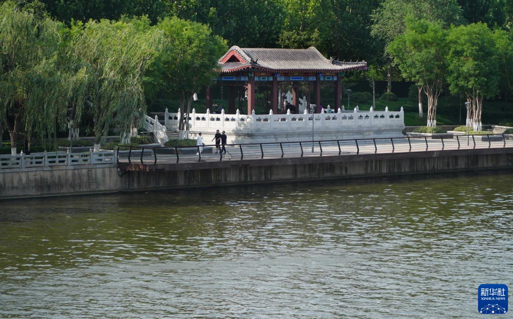 6月4日,市民在小清河濟南段岸邊休閑健身。