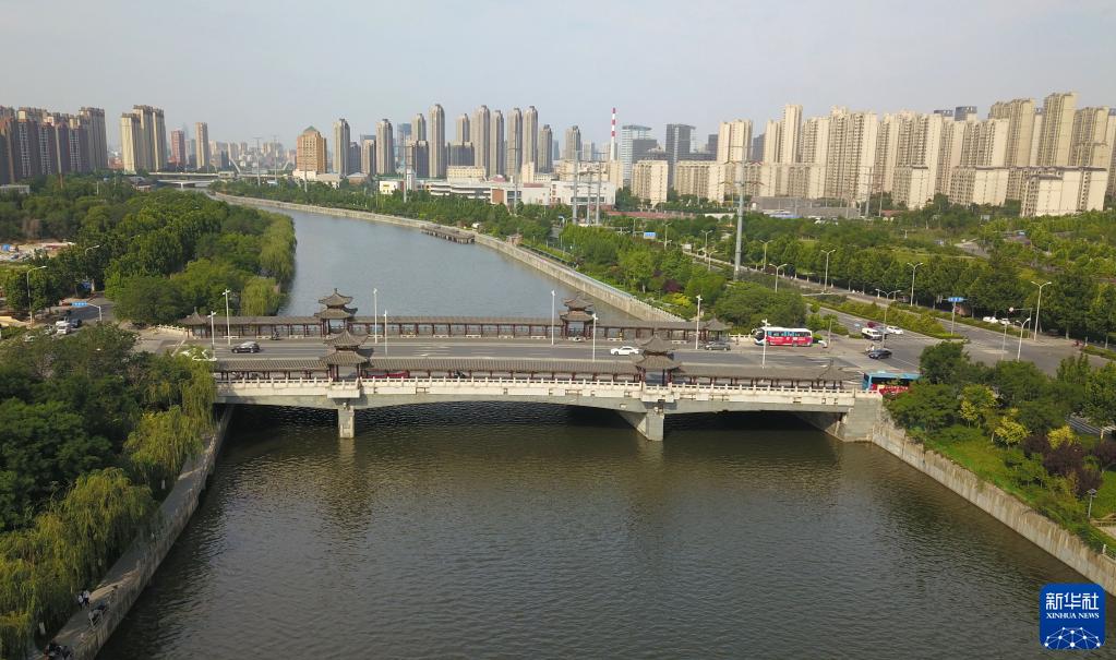 6月4日在山東省濟南市拍攝的小清河濟南段(無人機照片)。