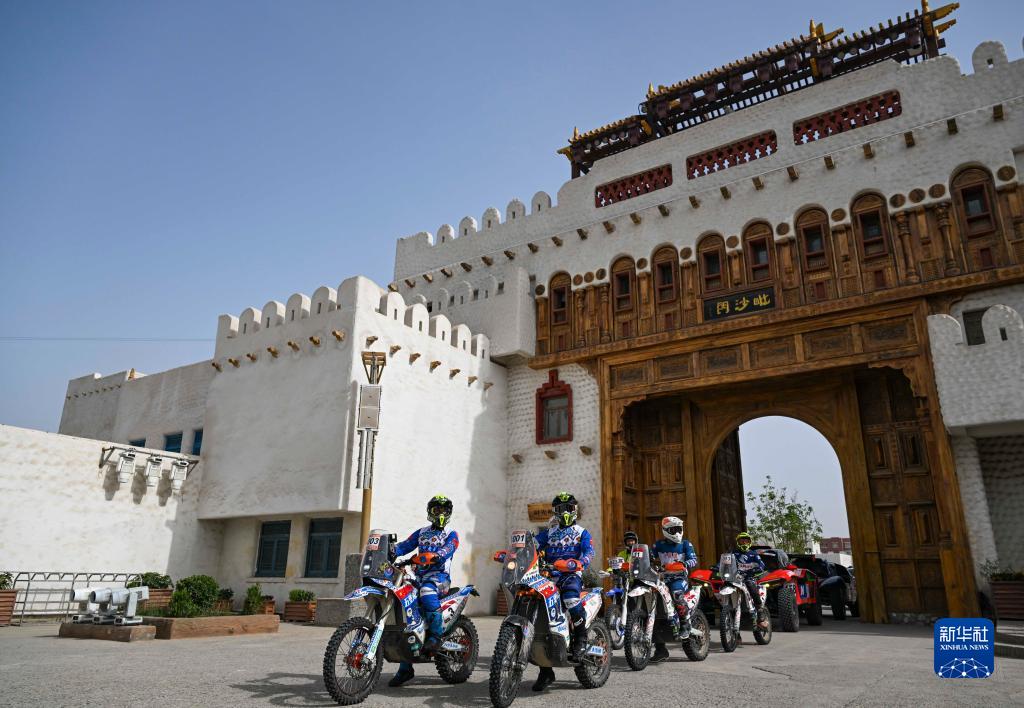 6月1日,在新疆和田地區約特干故城景區,2023年環塔拉力賽參賽代表參加旅游展示活動。