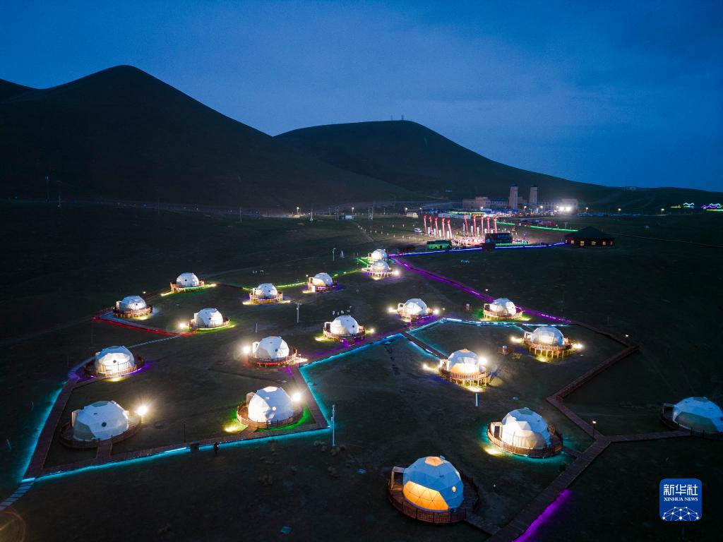 5月30日,環塔拉力賽昆侖天路賽段篝火晚會在新疆和田策勒縣板蘭格景區舉辦,這是當日拍攝的該景區星空營地(無人機照片)。