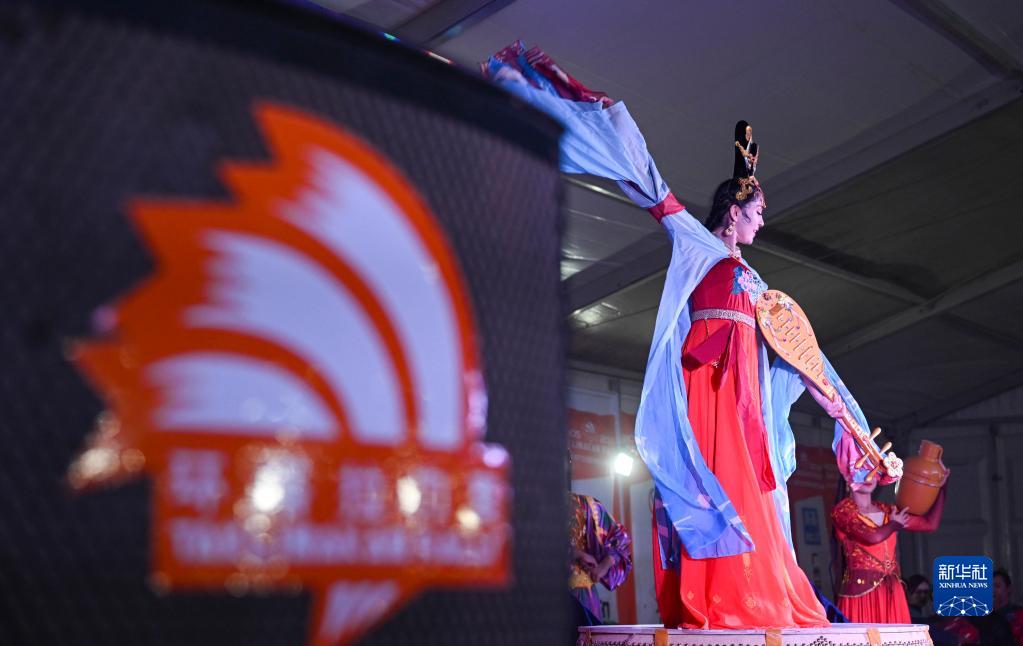 5月24日,舞蹈演員在2023年環塔拉力賽前三個賽段“金頭盔”頒獎儀式上演出。