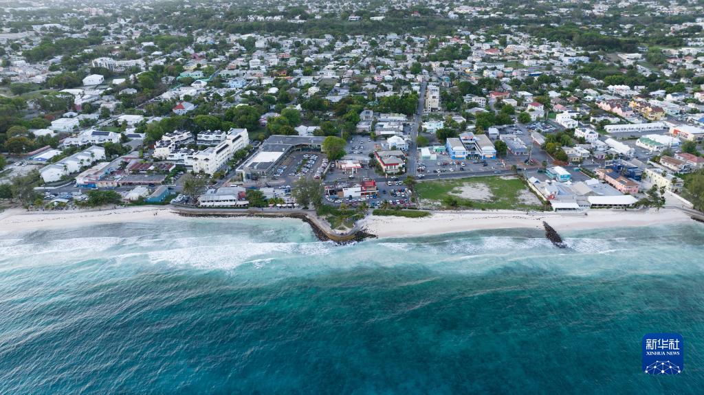 這是5月29日拍攝的巴巴多斯首都布里奇敦的海岸線風光(無人機照片)。