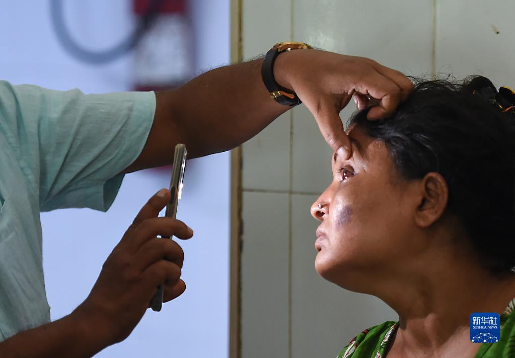 6月4日,列車脫軌相撞事故的傷者在印度奧迪沙邦巴拉索爾的一家醫院接受醫生檢查。