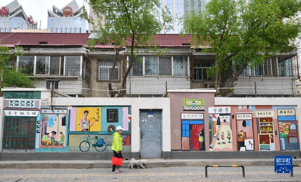 6月4日,市民經過銀川市興慶區教育巷特色墻繪。