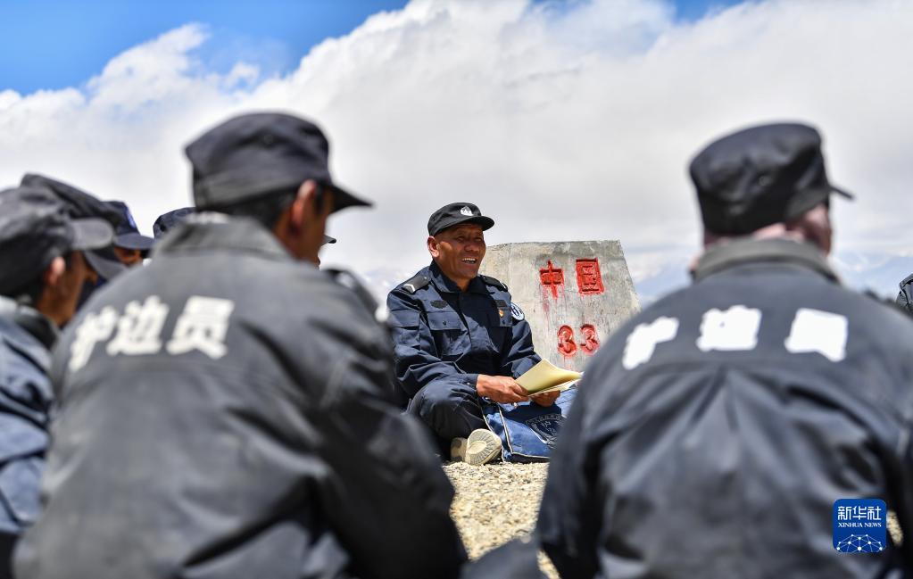 6月2日,在33號界樁處,護邊聯防隊在隊長石角(右二)的帶領下學習。