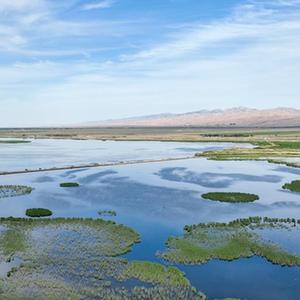 夏日里,位于內蒙古巴彥淖爾市烏拉特前旗的烏梁素海波光粼粼,風景如畫。