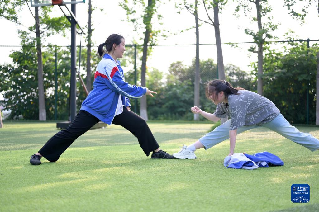6月4日,在湖南省婁底市雙峰縣曾國藩高級實驗中學,高三學生在做趣味游戲。