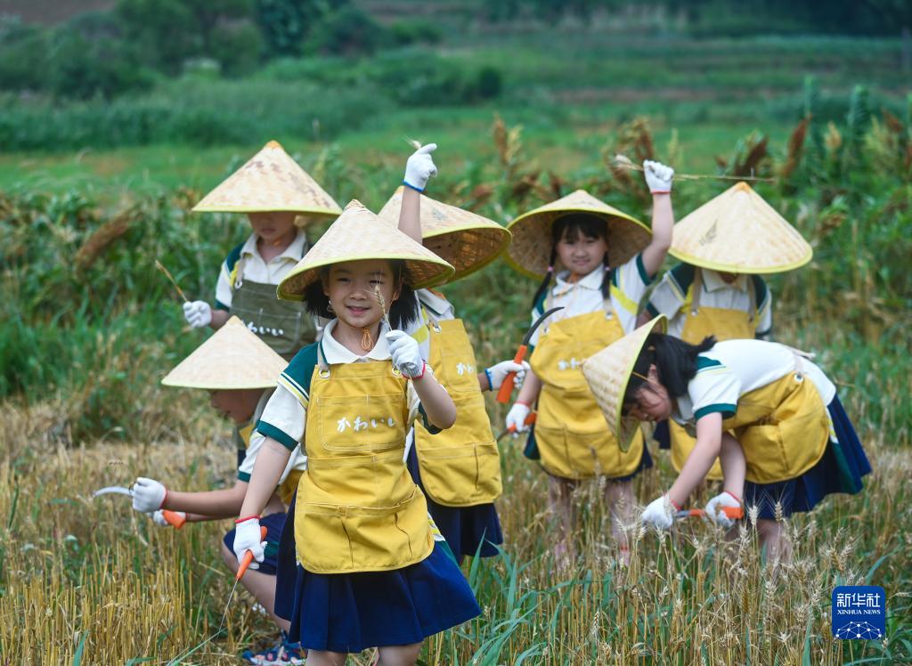 6月5日,芒種節氣來臨前,浙江省湖州市仁北幼兒園的孩子們在家長和老師的帶領下來到道場鄉格林農莊開展校園精細化特色課程——芒種田野實踐活動。孩子們在田野里收獲小麥和插秧,感受收獲與耕種的忙碌,這也屬于“閱讀、運動、勞動”精細化特色課程的重要組成部分。