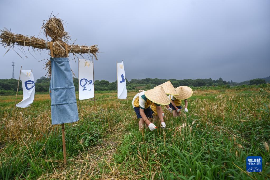 6月5日,芒種節氣來臨前,浙江省湖州市仁北幼兒園的孩子們在家長和老師的帶領下來到道場鄉格林農莊開展校園精細化特色課程——芒種田野實踐活動。孩子們在田野里收獲小麥和插秧,感受收獲與耕種的忙碌,這也屬于“閱讀、運動、勞動”精細化特色課程的重要組成部分。