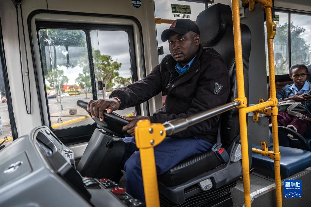 6月3日,肯尼亞電動巴士公司駕駛員駕駛電動巴士行駛在內羅畢街頭。