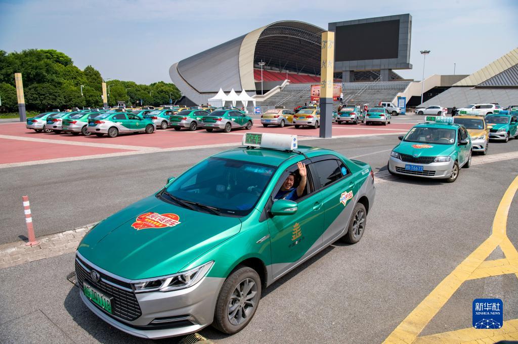 當日,40輛張貼著“愛心送考車”標識的出租車在金華市體育中心廣場集合出發,啟動“愛心護考”公益行動。這些“愛心送考車”將在今年高考、中考期間??吭诟骺键c保障位置,為有需要的考生提供接送服務。