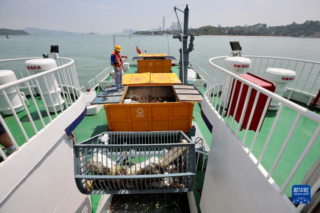 成立于1994年的福建省廈門市海上環衛站專職負責海上保潔工作。目前,環衛站共設置4個環衛碼頭,配備6艘自主研發設計的機械清掃船和48艘小型保潔船舶,作業人員160余人,實現海漂垃圾“打撈清理-吊裝轉運-資源化無害化處置”全過程管理和近岸海域保潔全覆蓋,守護碧海銀灘。