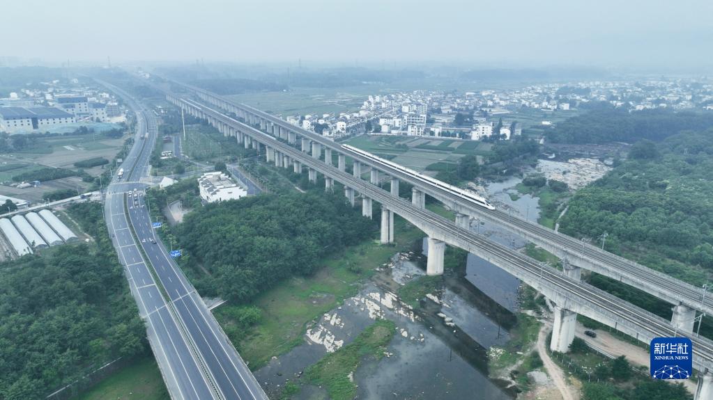 6月4日,從安徽省黃山市開往浙江省杭州市的列車從黃山北站駛出。