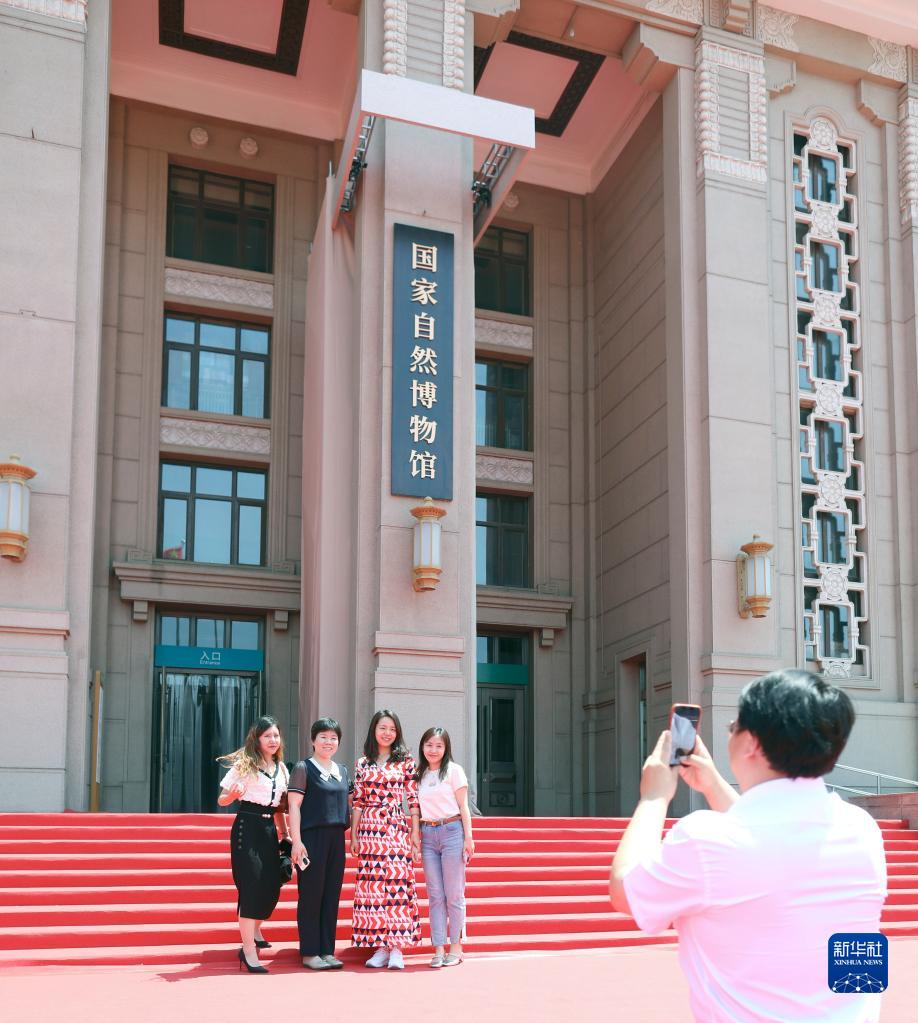 6月5日,人們在國家自然博物館前留影。