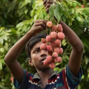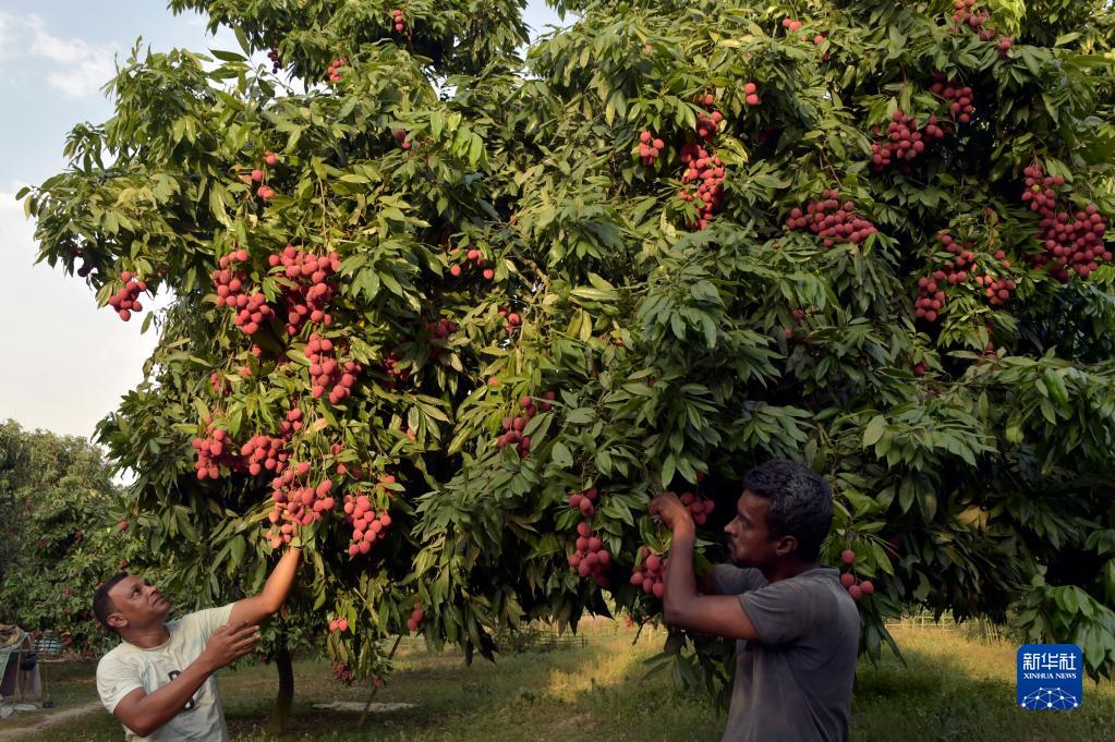 6月4日,農民在孟加拉國迪納杰布爾的果園里采摘荔枝。