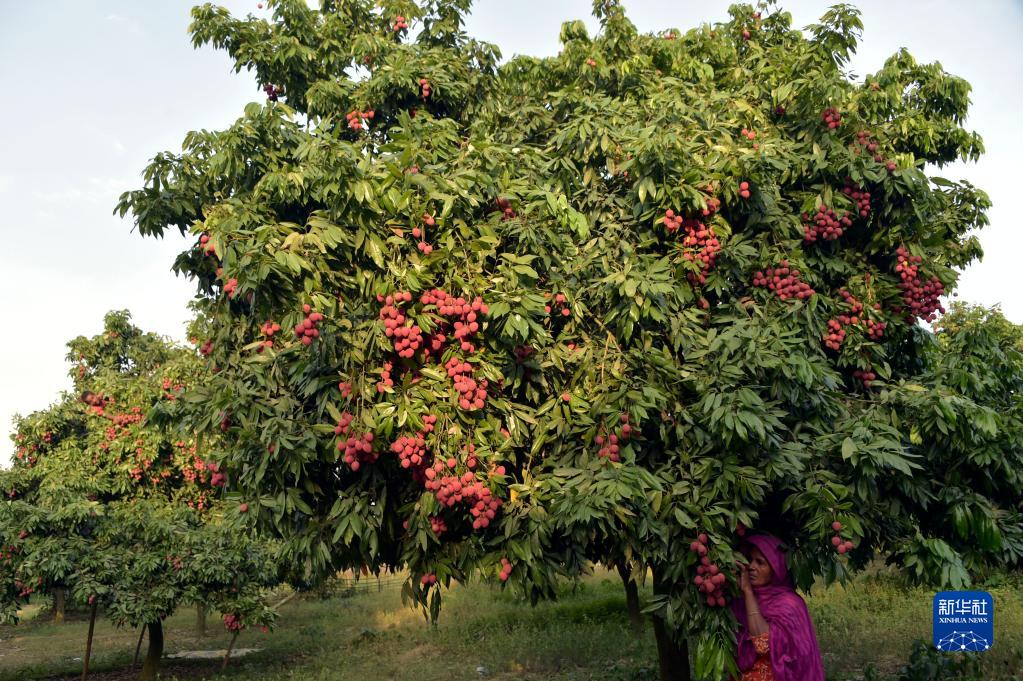 6月4日,一名婦女在孟加拉國迪納杰布爾的果園里采摘荔枝。