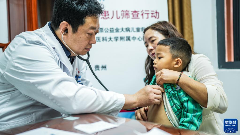 6月6日,在關嶺布依族苗族自治縣中醫醫院,山東第一醫科大學附屬中心醫院的醫療專家為小朋友做檢查。