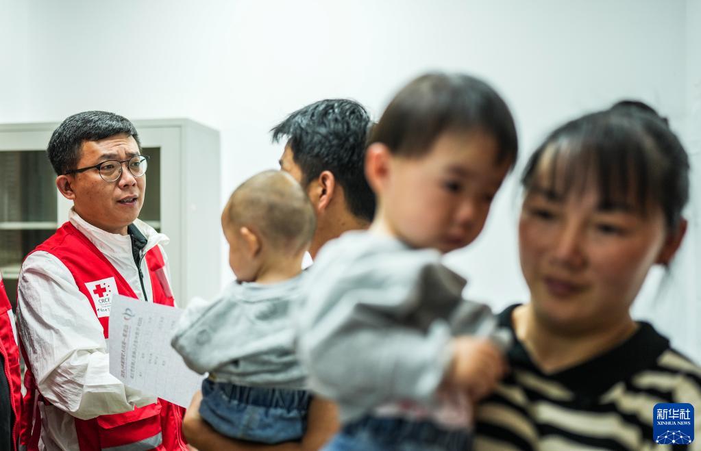 6月6日,在關嶺布依族苗族自治縣中醫醫院,紅十字志愿團隊工作人員和家長溝通。
