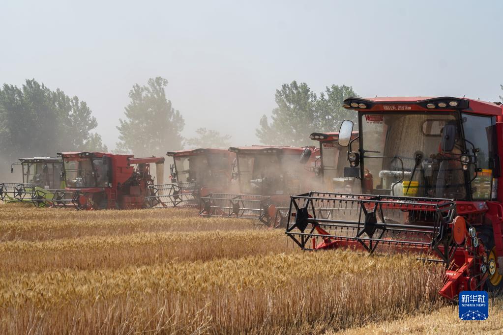 6月6日,農機手在現場駕駛收割機進行機收減損比武競賽。