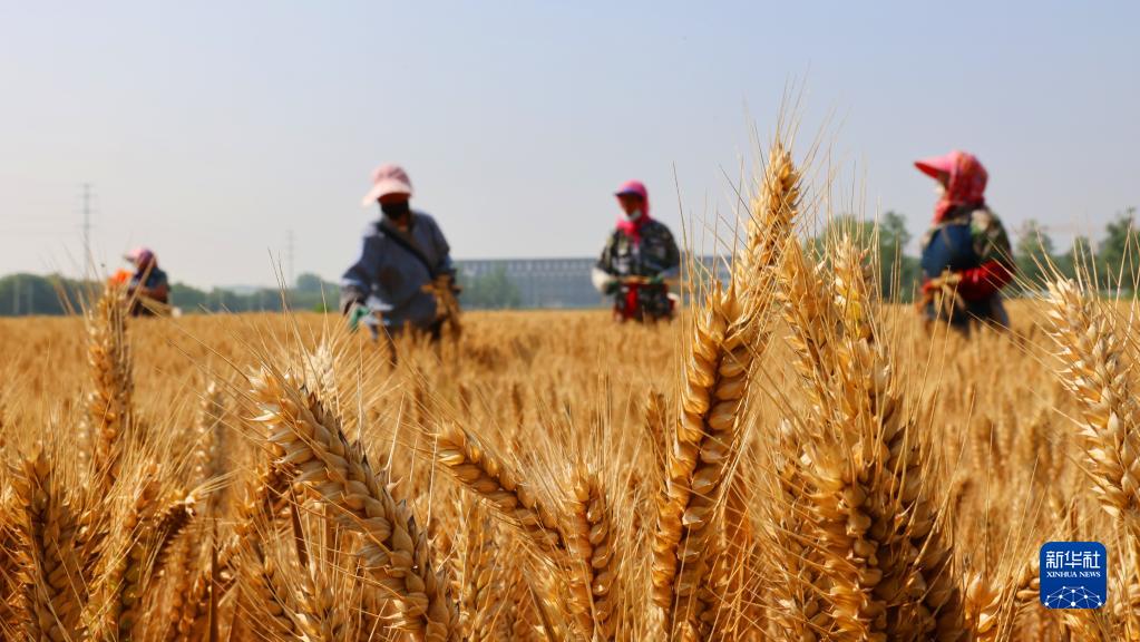 6月6日,在江蘇省連云港市海州區寧海街道西劉莊,村民在給即將收割的小麥進行保種除雜作業。