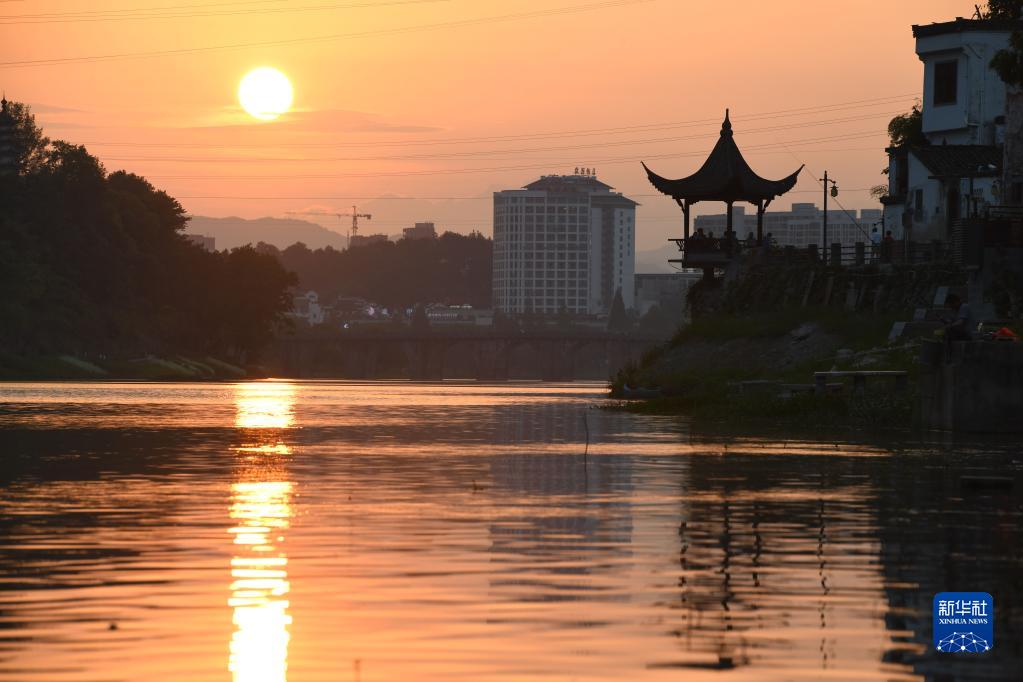 這是6月1日拍攝的位于新安江上游的安徽省黃山市歙縣漁梁景區。