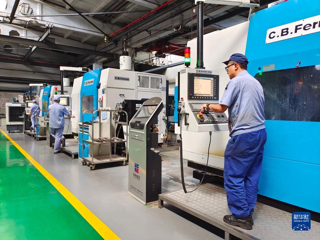 6月4日,在哈電集團汽輪機公司葉片分廠,工作人員在操作設備。