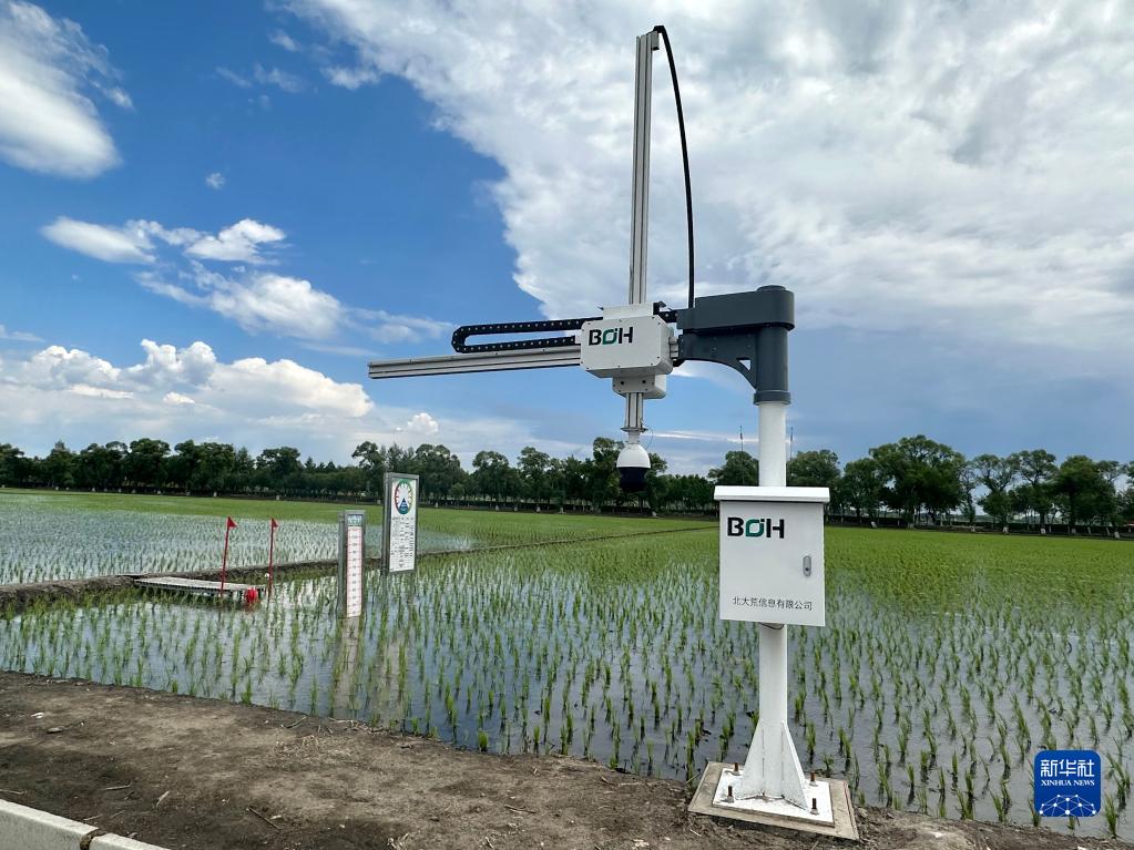 6月5日在北大荒集團黑龍江閆家崗農場有限公司的一處稻田拍攝的葉齡診斷儀。