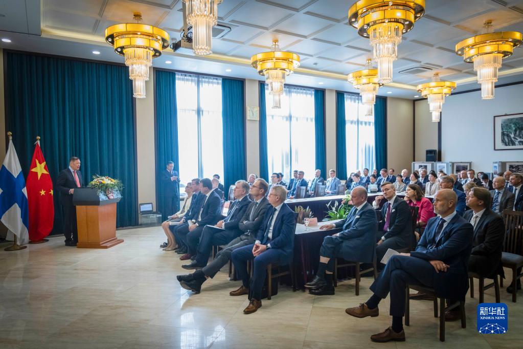 這是6月5日在芬蘭赫爾辛基拍攝的以“回顧中芬互利合作70年,攜手面向未來”為主題的研討與慶?;顒蝇F場。