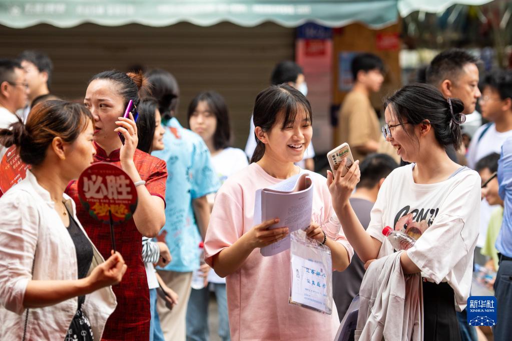 6月7日,在湖南長沙市第一中學考點,考生在考場外和同學聊天。
