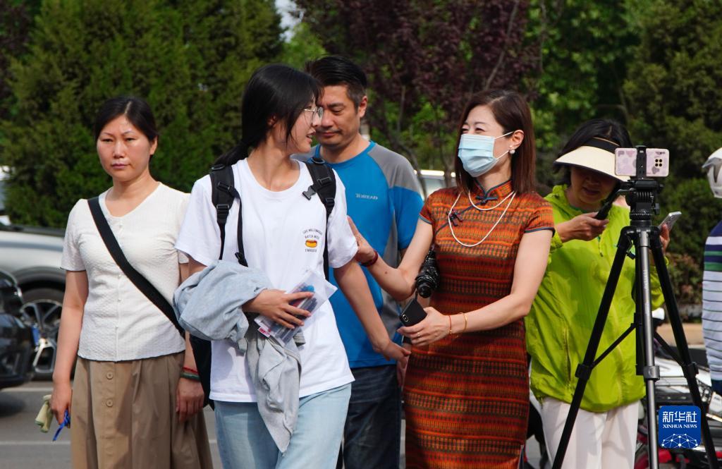 6月7日,在位于山東省濟南市的濟南藝術學??键c,一名考生家長目送考生進入考場。