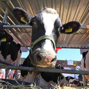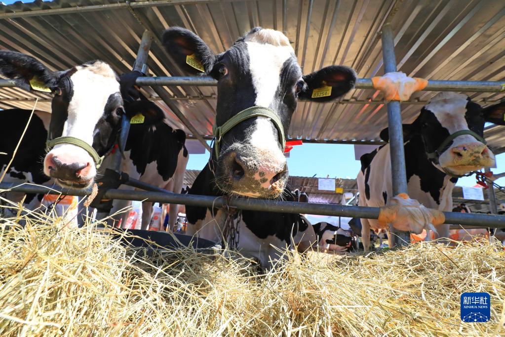 這是6月6日在白俄羅斯明斯克中白工業園拍攝的2023白俄羅斯國際農業展上的奶牛。