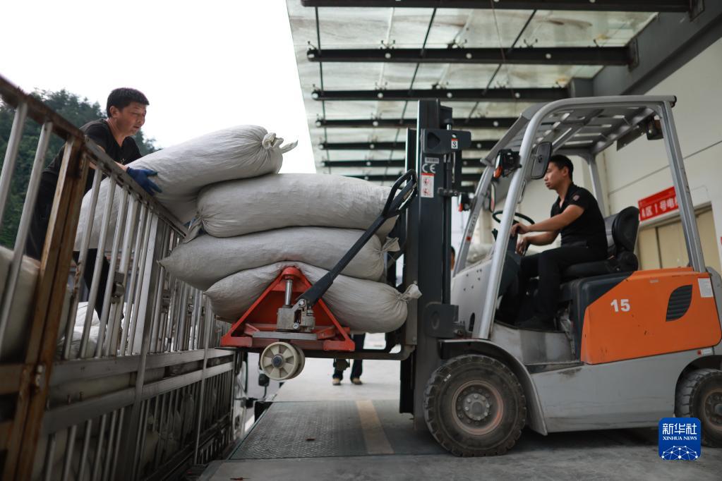 6月6日,工人在貴州省遵義市中國辣椒城將辣椒裝車運輸。