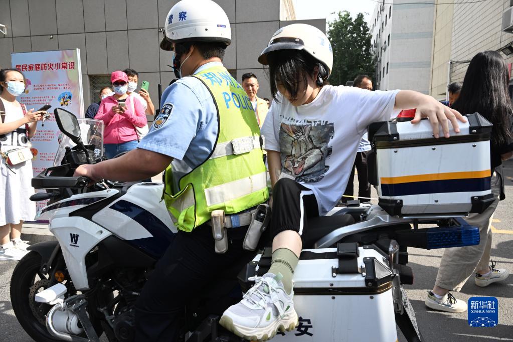 當日,2023年高考首場開考前,在河南省鄭州市黃河科技學院附屬中學考點,一名考生走錯考點,執勤的警察緊急將該考生送往她的考點。