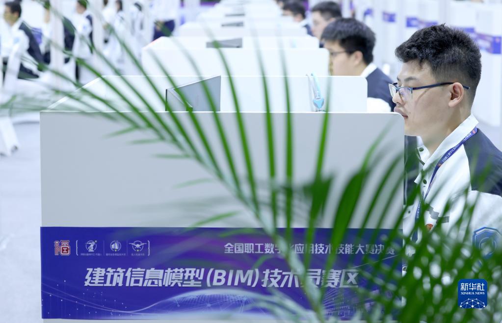 6月7日,參賽選手在建筑信息模型(BIM)技術員項目的比賽中。