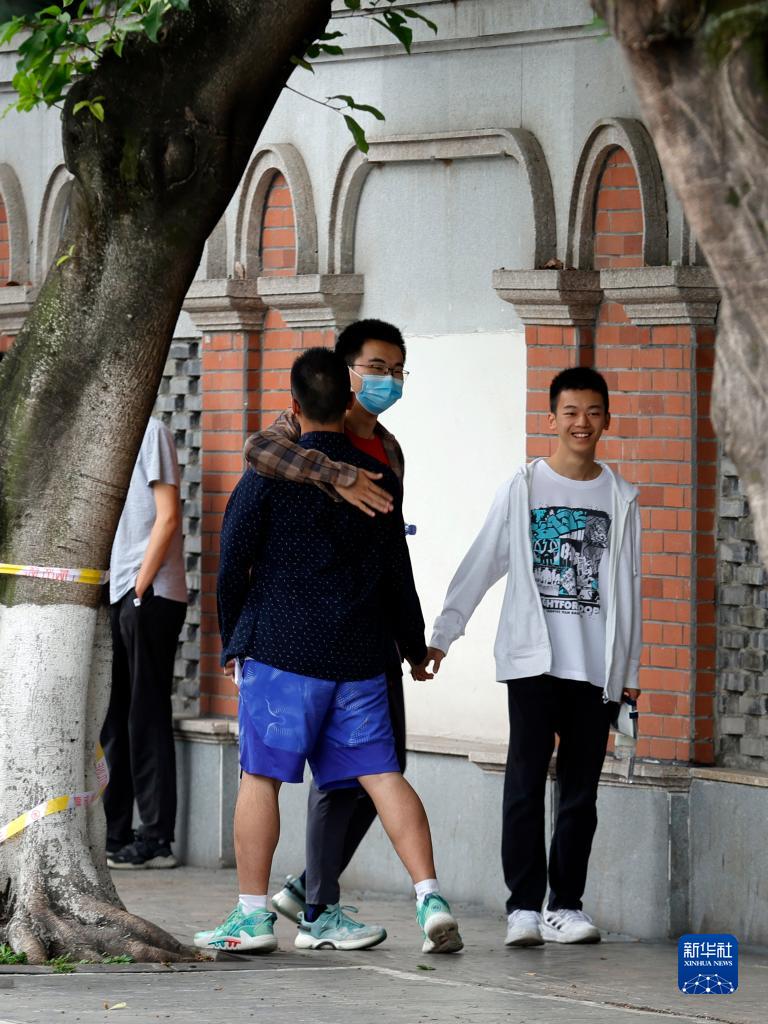 6月7日,在四川省成都市第七中學林蔭校區考點外,學生互相加油鼓勁。
