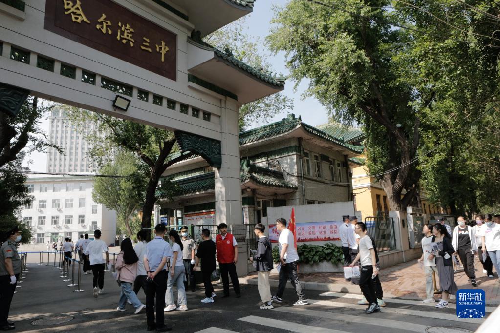 6月7日,在哈爾濱市第三中學考點,考生們有序進入考場。