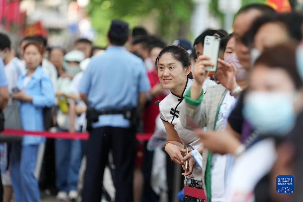 6月7日,在哈爾濱市第九中學考點外,家長目送考生進入考場。