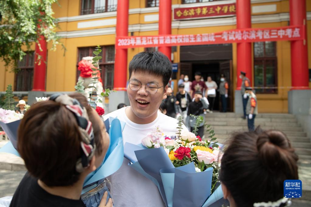 6月7日,在哈爾濱市第三中學考點,考生結束當日第一科考試后走出考場。